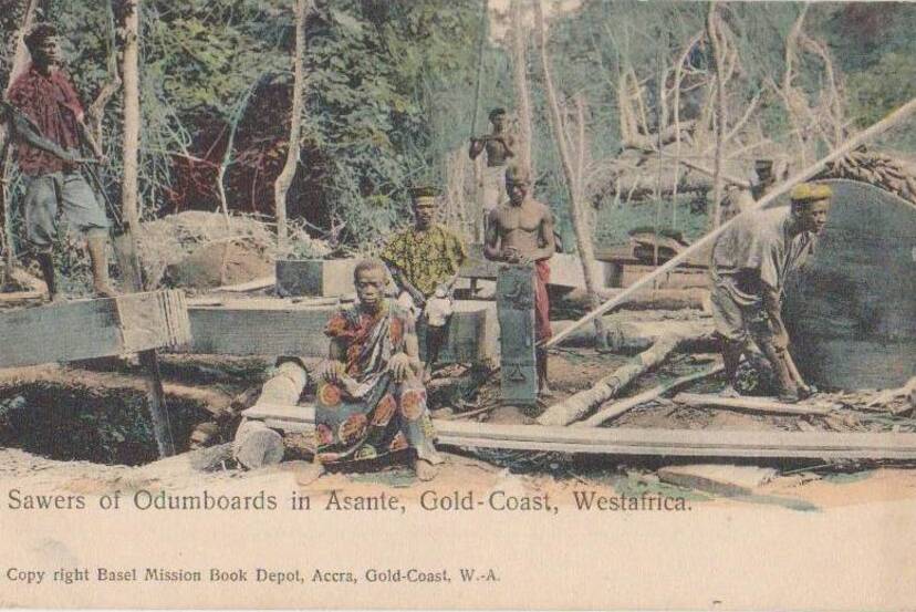 Old photo postcard of Asante, near Kumasi around 1905 (c) Remo Kurka